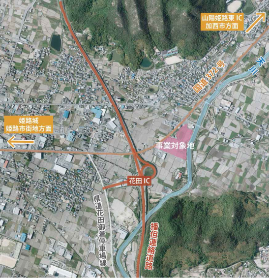 現在、花田ICの北側、国道372号線沿いに(姫路市飾東町豊国)に、姫路初となる道の駅が計画されており、令和11年度に開業が予定されています。