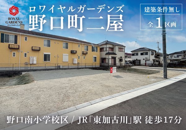 【会員限定公開】ロワイヤルガーデンズ野口町二屋|限定1区画|建築条件なし分譲地