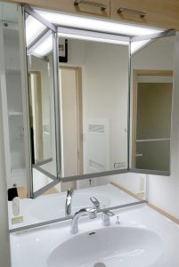 2人ならんで洗面の鏡を使いたいときにもとても便利だと感じました。