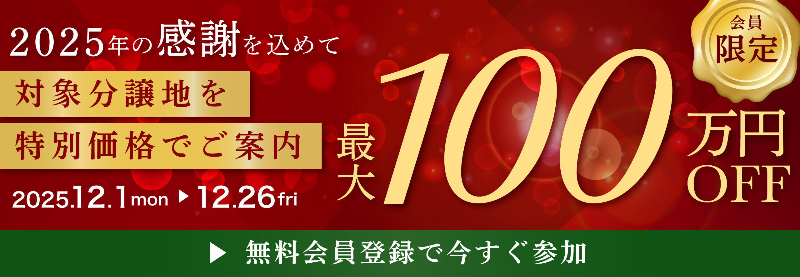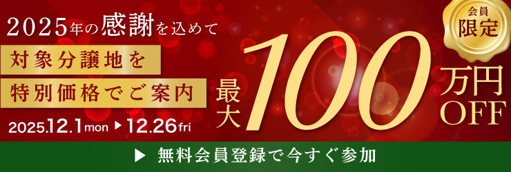 会員限定|歳末キャンペーン◇最大100万円OFF!対象分譲地を特別価格でご案内